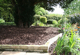 The mulch material may be organic such as bark, wood chips, pine needles, composts or similar material; or inorganic such as gravel, pebbles or woven ground cloth.