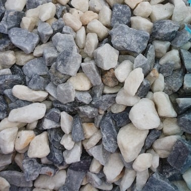 Polar Ice is a mixture of white, blue, and grey in an angular chipping. It is a highly decorative aggregate that will add an uplifting contrast to any project.