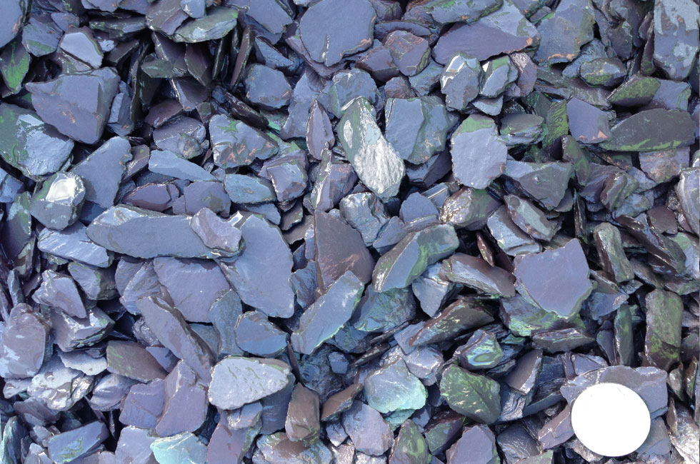These small plum slate chippings are one of our most popular varieties, often used in water features and for mulching.